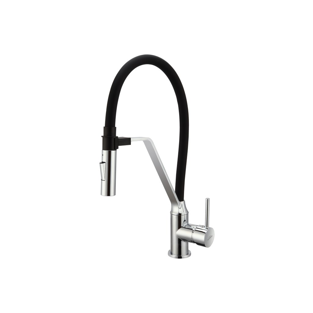 Invena Terra, elasztikus karral ellátott konyhai csaptelep, fekete-króm, INV-BZ-54-L04-D