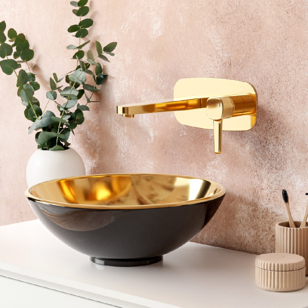 Invena Tinos, kerámia munkalap mosogató 39,5x39,5x13,5 cm, fényes arany-fényes fekete, INV-CE-43-027-C