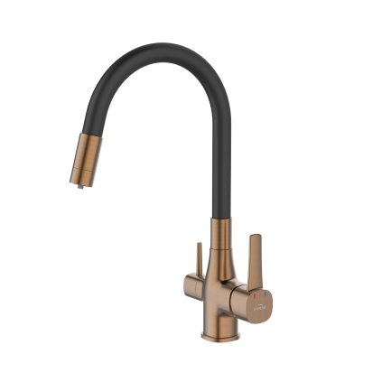 Invena Magic, álló mosogatócsaptelep flexibilis karral és ivóvízszűrővel, matt bézs, INV-BZ-02-F03-V