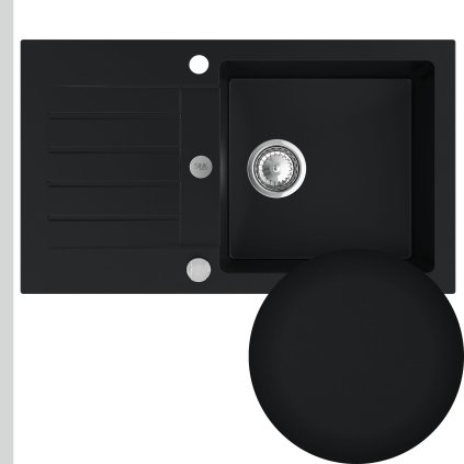 Mosogató Quality Ferrum 50, konyhai gránit mosogató 490x450x195 mm + szifon, fehér, SKQ-FER.W.1K50.X