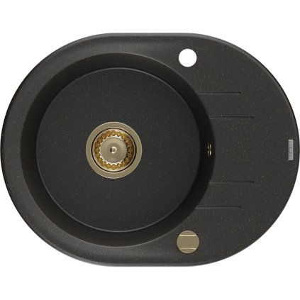 Mexen Enzo, gránit mosogató 576x465x174 mm, 1 kamrás, fekete foltos arany szifonnal, 6506571005-76-G