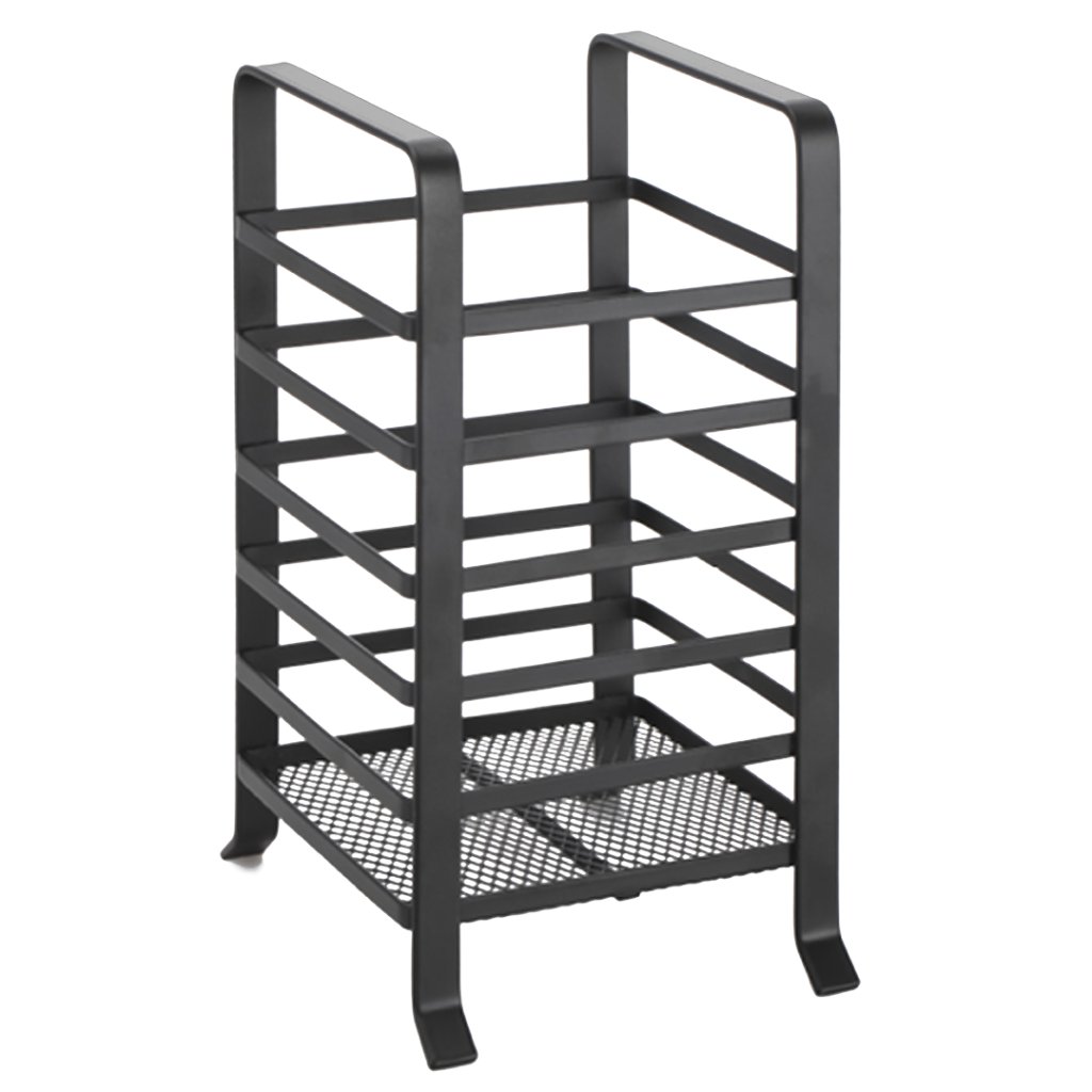 A divatos fekete kiegészítők minden modern konyhában kötelezőek. Az elegáns, meleg edénytartóból, edénytartóból és papírtörlőtartóból álló, szabadon álló étkészletet geometrikus formák jellemzik. A termékek keskeny acél lapos rudakból készülnek, porszórt bevonattal. A kiegészítőket ipari belső terek ihlették, és minimalista belső terekhez tervezték. A stabil edény alkalmas lesz evőeszközök mosogatás utáni szárítására, valamint nagyobb edények pulton vagy konyhaszekrényben történő tárolására.