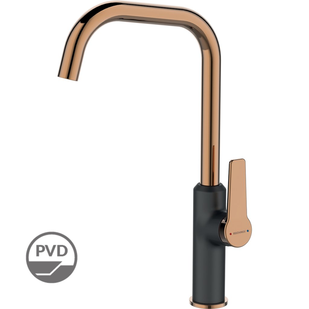 Kuchinox Alanis, magas mosogató csaptelep L alakú kifolyóval, h-379, fekete-rózsa arany, LAV-BQI_865D