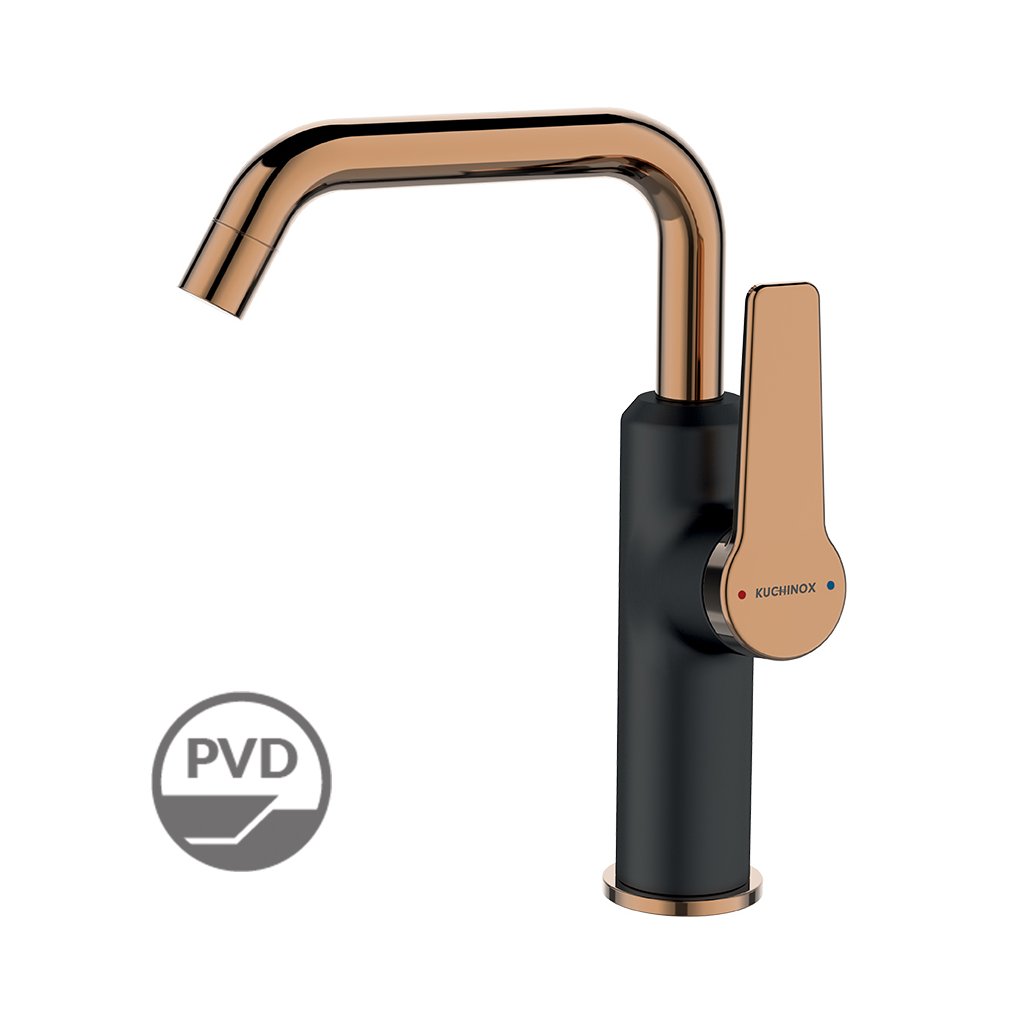 Kuchinox Alanis, mosdócsaptelep L alakú kifolyóval, h-235, fekete-rózsa arany, LAV-BQI_825D