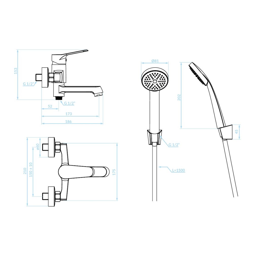 | Szerelés: | fali 150 mm |