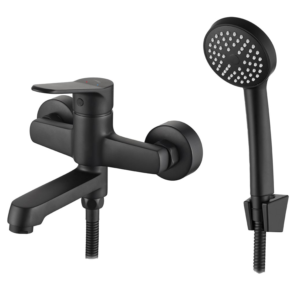 Kuchinox Atez, falra szerelhető kádcsaptelep kézizuhany készlettel, matt fekete, LAV-BTK_711D