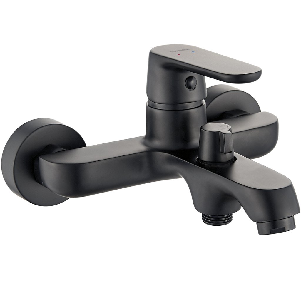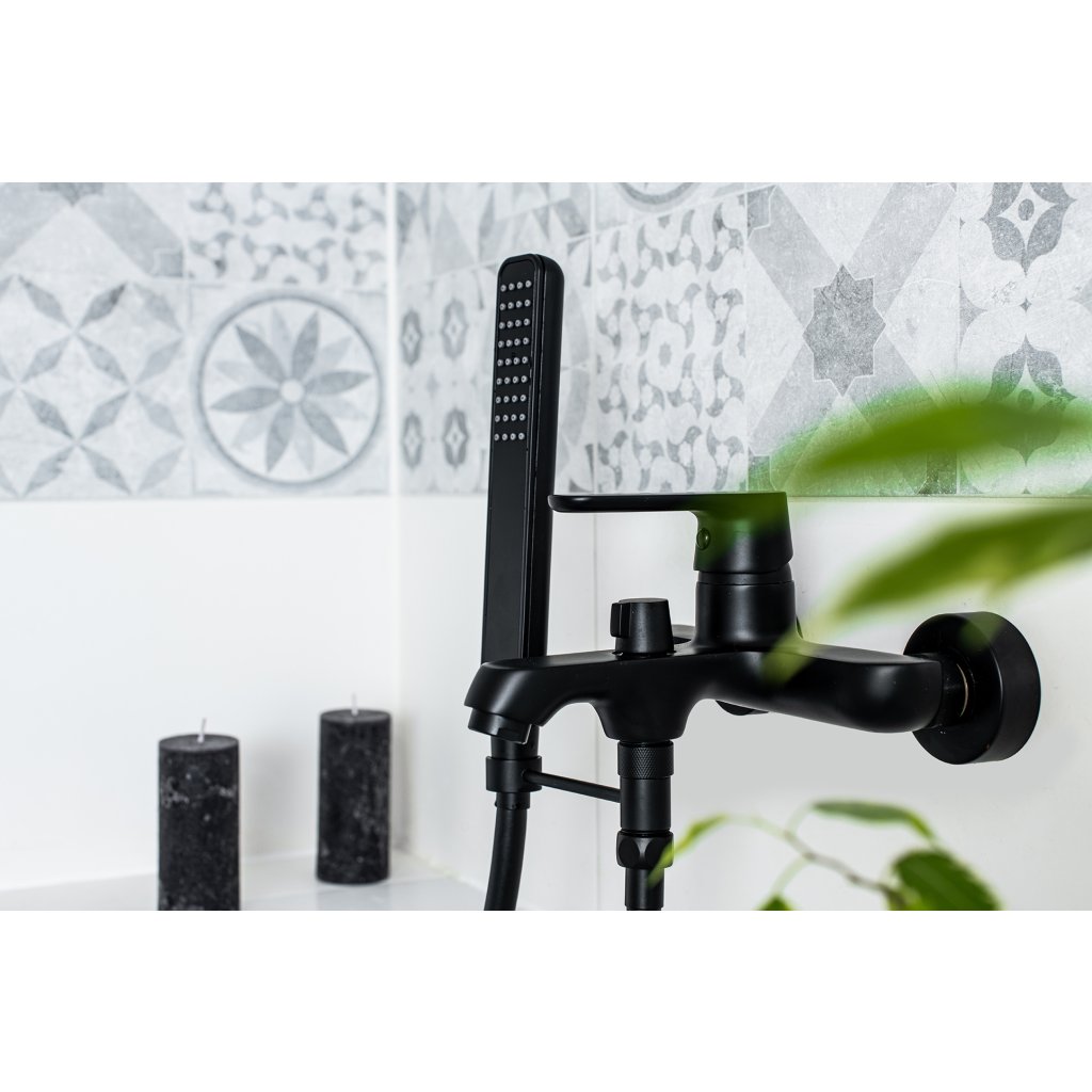 Kuchinox Dima, falra szerelhető kádcsaptelep kerámia zuhanyterelővel, matt fekete, LAV-BQD_710D