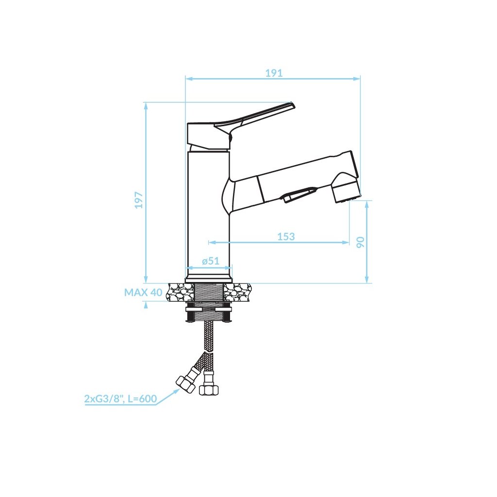 Kuchinox Fonte, mosdócsaptelep kihúzható zuhanyfejjel, króm, LAV-BQT_029D