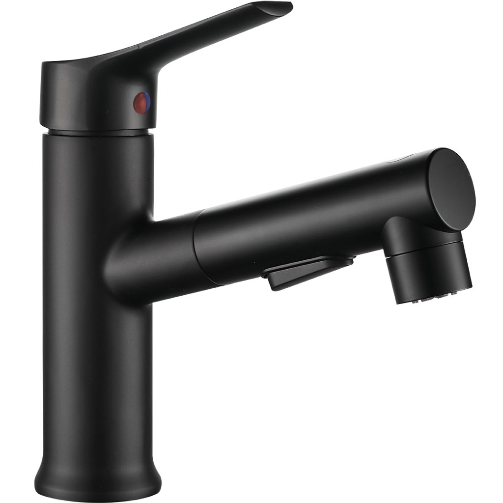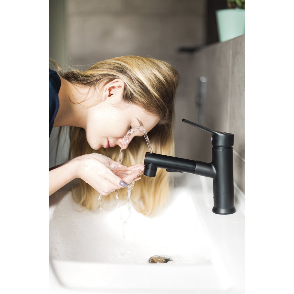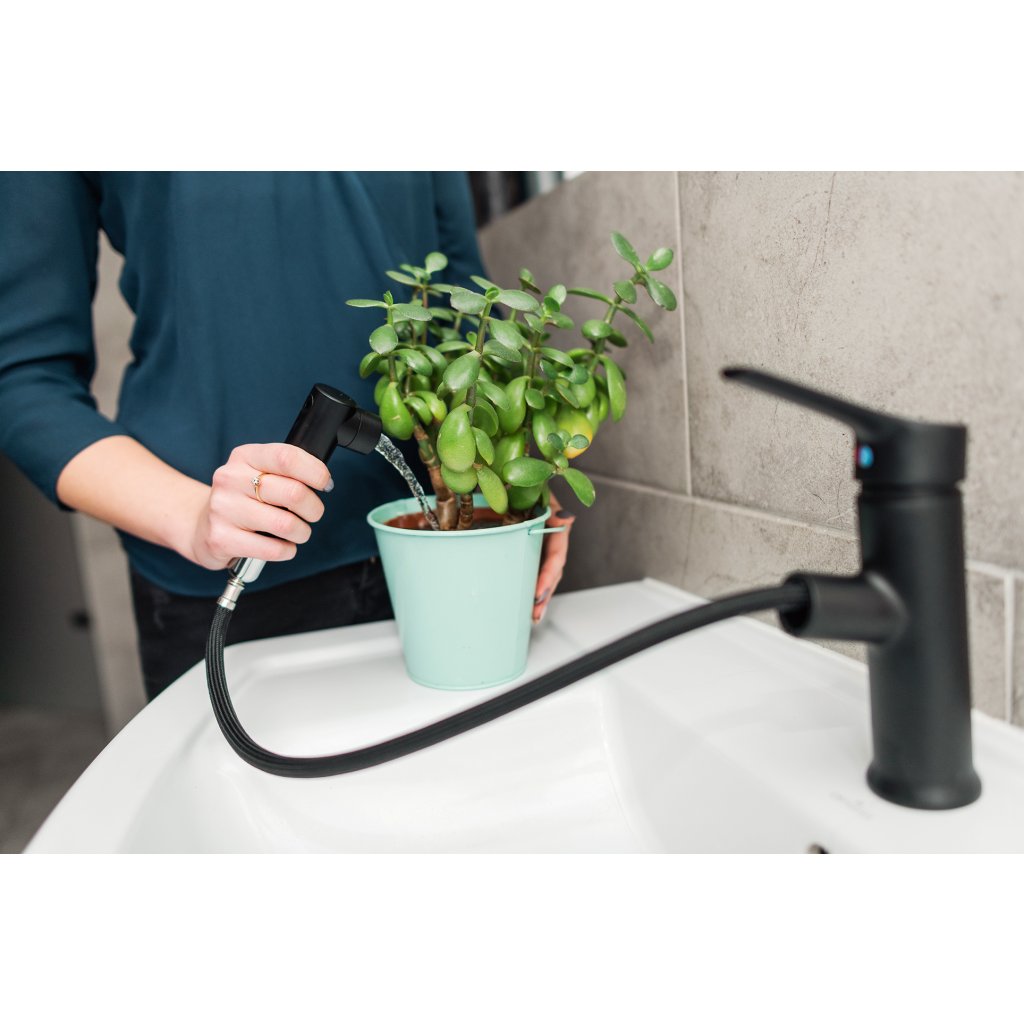 Kuchinox Fonte, mosdócsaptelep kihúzható zuhanyfejjel, matt fekete, LAV-BQT_729D