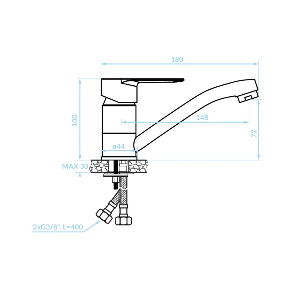 - Típus: mozgatható kifolyóval ellátott mosdócsaptelep