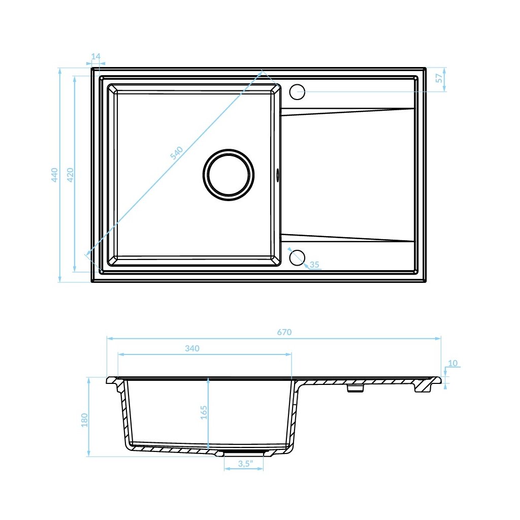 A Hunter Granite egytálos konyhai mosogató tökéletes minden konyhai igényhez. 20% gyantából és 80% gránitból és kvarcból készült. A tágas mosogatótálnak és a tágas lefolyónak köszönhetően számos tálat, tányért, evőeszközt és konyhai edényt tárolhat, moshat és száríthat. A mosogató ellenáll a szennyeződések és foltok felületén történő felhalmozódásának. 250°C-ig hőálló. A tartós, sérülésálló felület lehetővé teszi, hogy mosogatója túlélje a konyhai eszközökkel kapcsolatos gyakori baleseteket. A termékre 10 év garancia vonatkozik.
