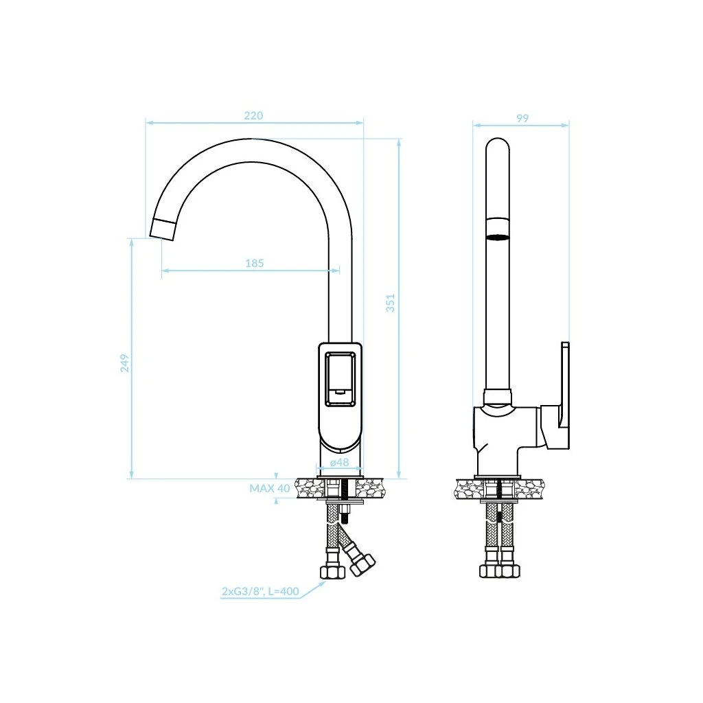 A csaptelep kiváló minőségű kerámia betéttel van felszerelve, amely garantálja a sima működést és a hosszú távú megbízhatóságot. A 35 mm átmérőjű, mozgatható, U alakú kifolyó maximális rugalmasságot biztosít különböző méretű edények mosogatásakor.