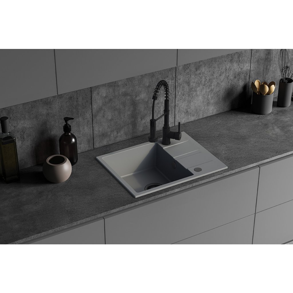 Kuchinox Laut, 1 rekeszes gránit mosogató 560x440x174 mm + szifon, szürke, LAV-SBZ_513Y