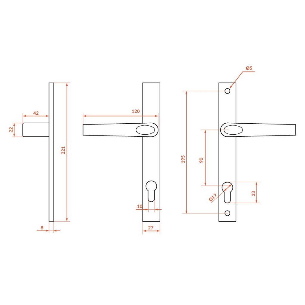 | Típus: | Kľučka na bránové dvere na dlhom kovaní pre cylindrickú vložku |