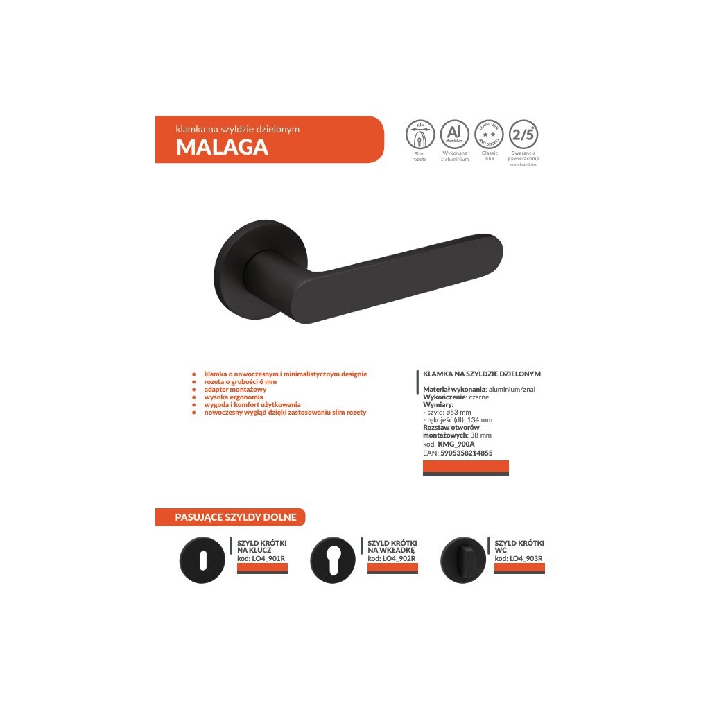 A fekete Malaga kilincs a modern dizájn feltűnő értelmezése, amely tökéletesen illeszkedik a különféle belső stílusokhoz. Robusztus konstrukciója elegáns, lenyűgöző, 6 mm vastag rozettával rendelkezik, amely nemcsak esztétikus megjelenést, hanem szilárdságot és tartósságot is kölcsönöz a kilincsnek. A csomag tartalmaz egy rögzítő adaptert is, amely megkönnyíti a beszerelési folyamatot és biztosítja a tökéletes illeszkedést. A fekete felület egyedi karaktert kölcsönöz a Malaga kilincsnek, amely tökéletesen illeszkedik mind a modern, mind a klasszikus belső terekbe. A gazdag színek és az elegáns dizájn kiváló ajánlattá teszi ezt a kilincset azok számára, akik egyedi kiegészítőket keresnek otthonukba. Sokoldalúságának köszönhetően a fekete Malaga kilincs tökéletesen illeszkedik elegáns nappalikba, modern irodákba és ipari loftokba. Nemcsak funkcionális eszköz, hanem feltűnő részlet is, amely karaktert és stílust kölcsönöz a szobának.