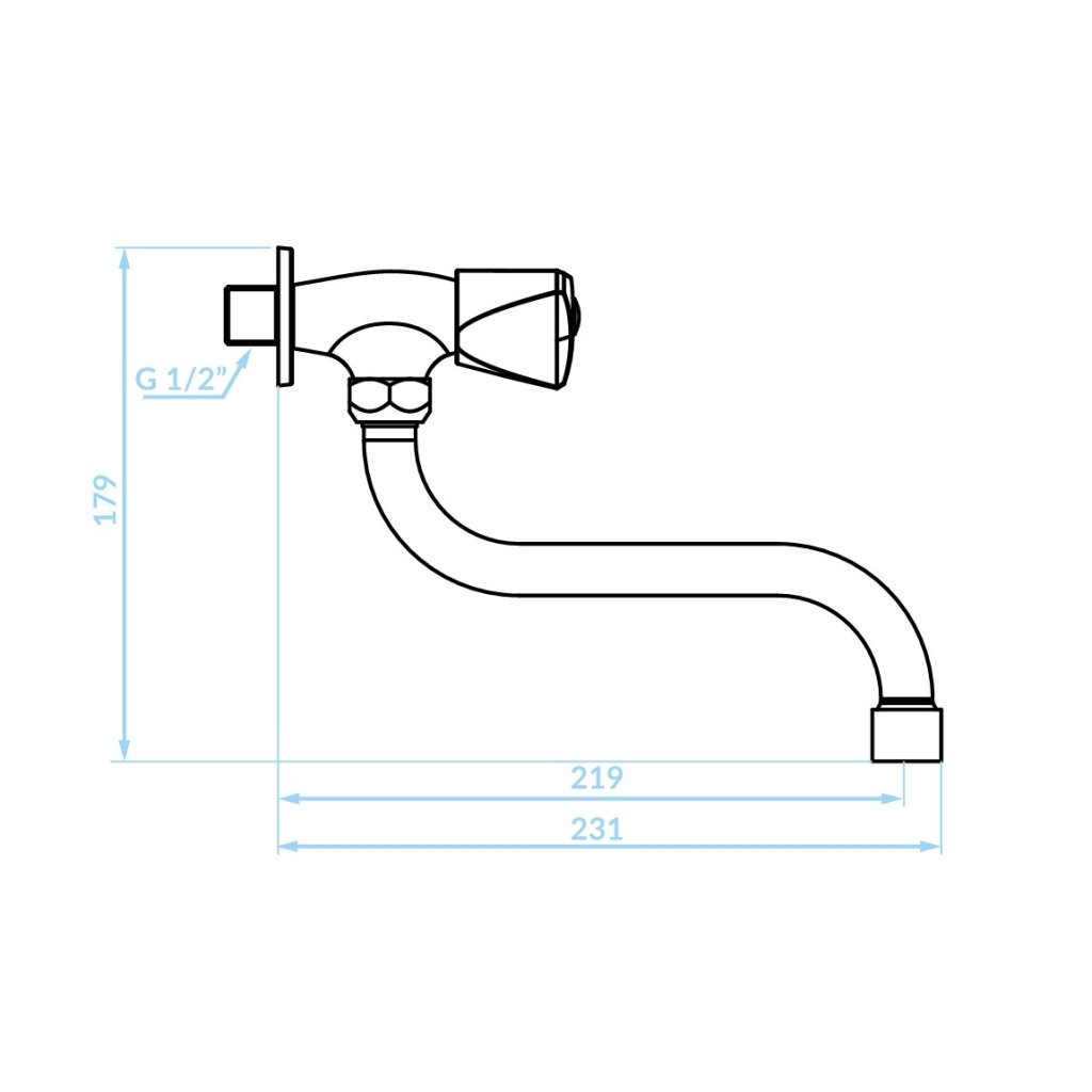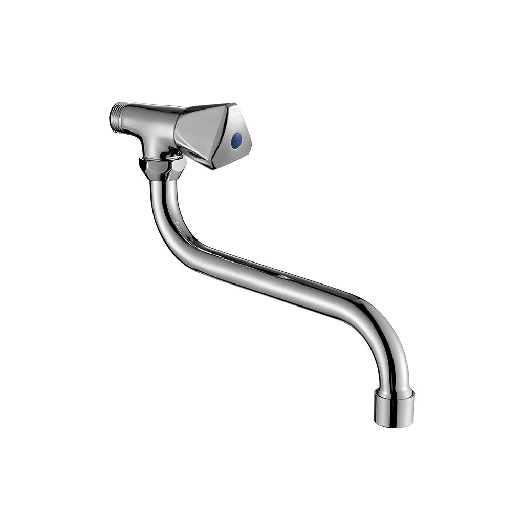 A hosszú kifolyóval ellátott fali csaptelep ideális mosodákba vagy műhelyekbe. Az egygombos modellt úgy tervezték, hogy a falra szerelhető legyen, közvetlenül a háztartási mosogató fölé. A mosogató szabad felülete tisztítószerek tárolására használható.