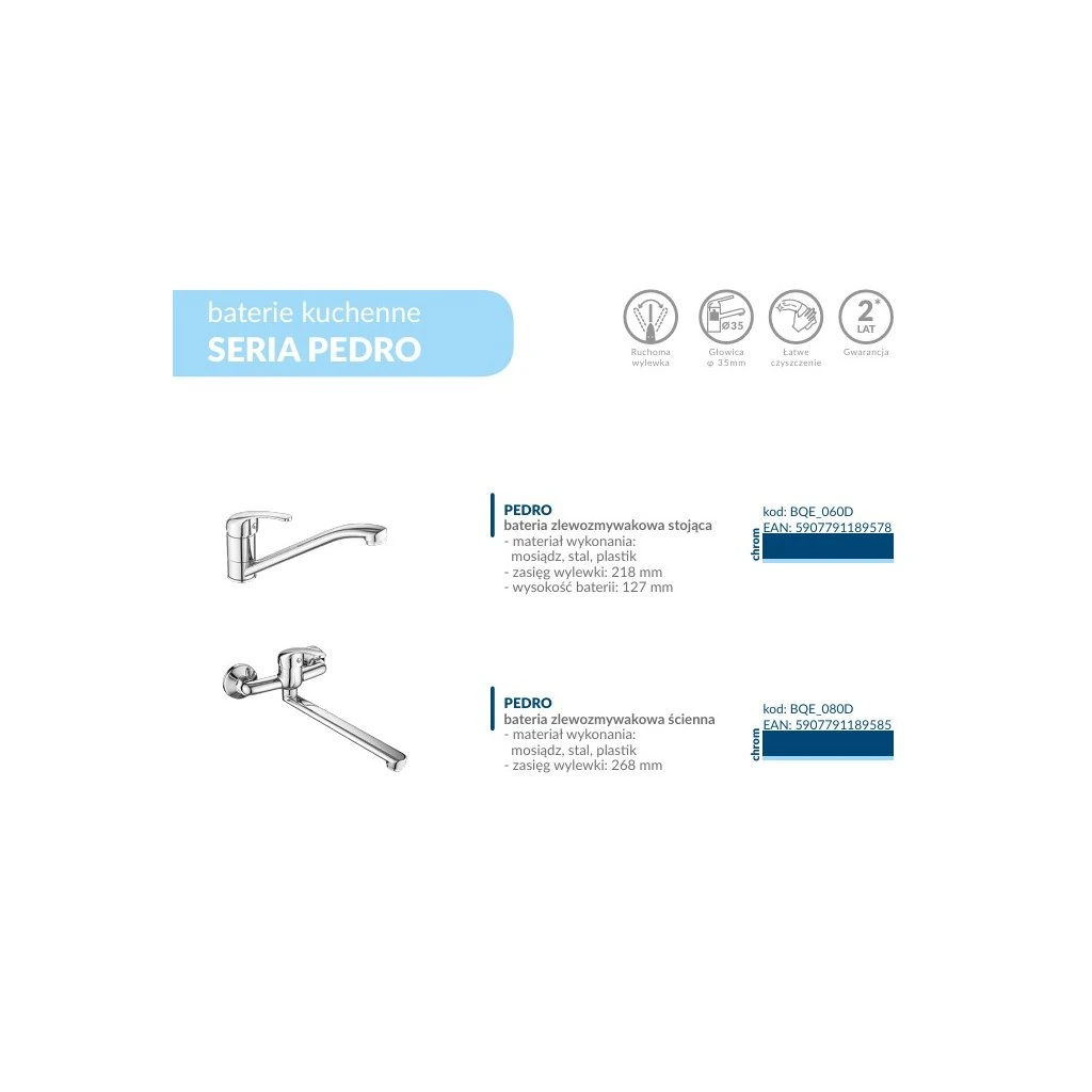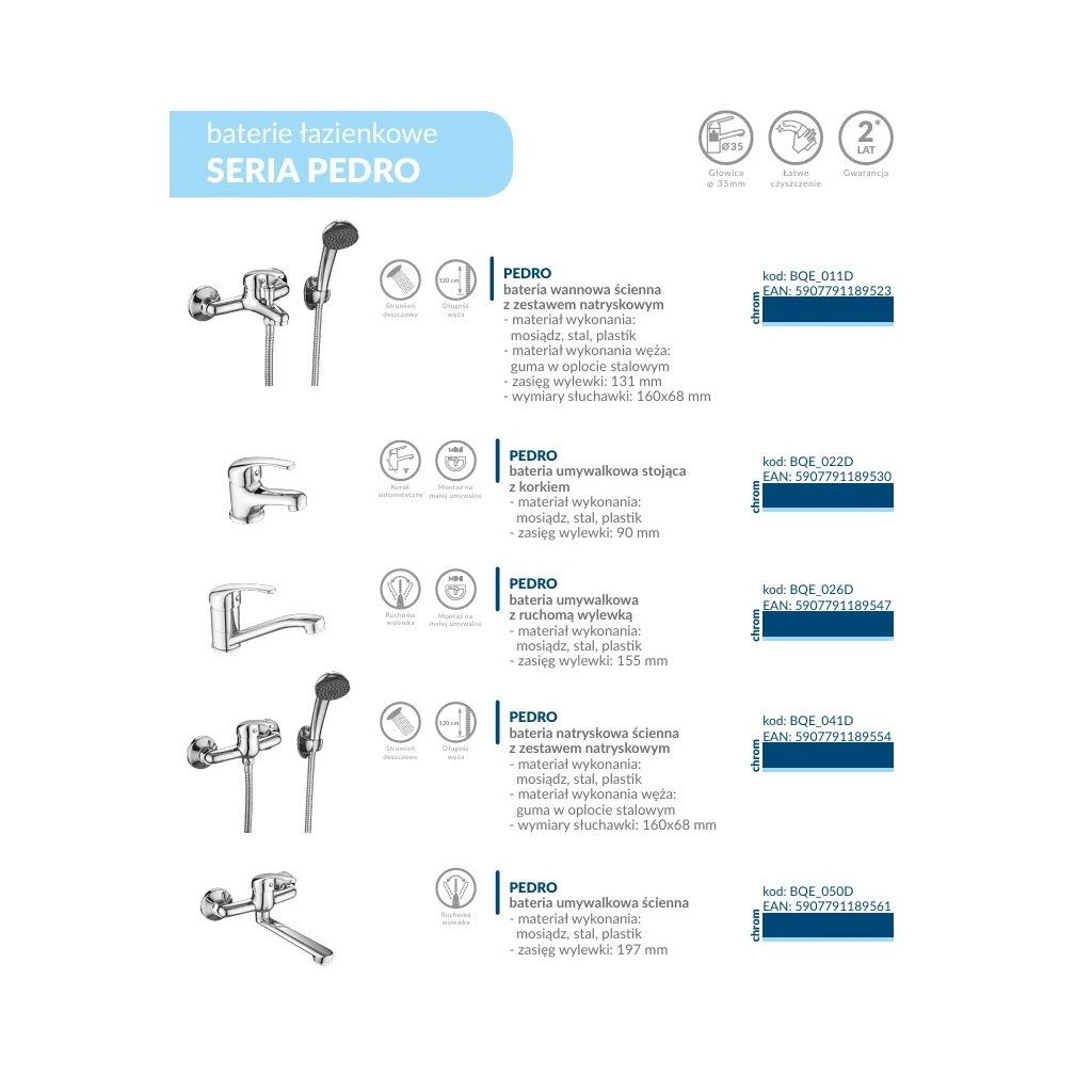 A Pedro fali kádcsaptelep ideális megoldás a modern fürdőszobákba, ahol a funkcionalitás és az esztétika kombinációja fontos. A csaptelep kiváló minőségű kerámiabetéttel van felszerelve, amely hosszú távú megbízhatóságot és a hőmérséklet, valamint a vízáramlás zökkenőmentes szabályozását garantálja.