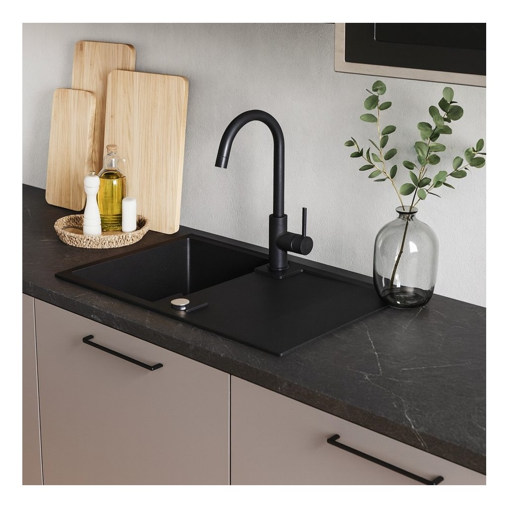 A Rab egymedencés, csepegtetős gránit mosogató modern, divatos dizájnnal rendelkezik. Minimalista stílusú, és szinte bármilyen konyhai elrendezéshez illik. A fekete termék remekül mutat fa vagy fehér munkalapokkal kombinálva. A Rab modell ideális ipari vagy loft belső terekbe. Nagyon tartós, és sokáig tökéletes állapotban marad. A termékre 10 év gyártói garancia vonatkozik. Részletekért lásd a jótállási jegyet.