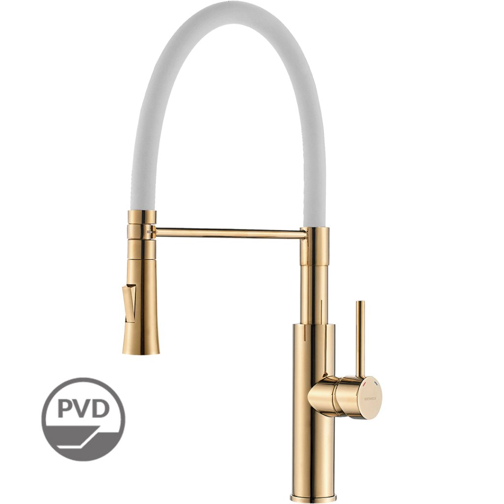 Kuchinox Shire, magas mosogató csaptelep U-alakú kifolyóval h-499, fehér-arany fényes, LAV-BQH_G78D