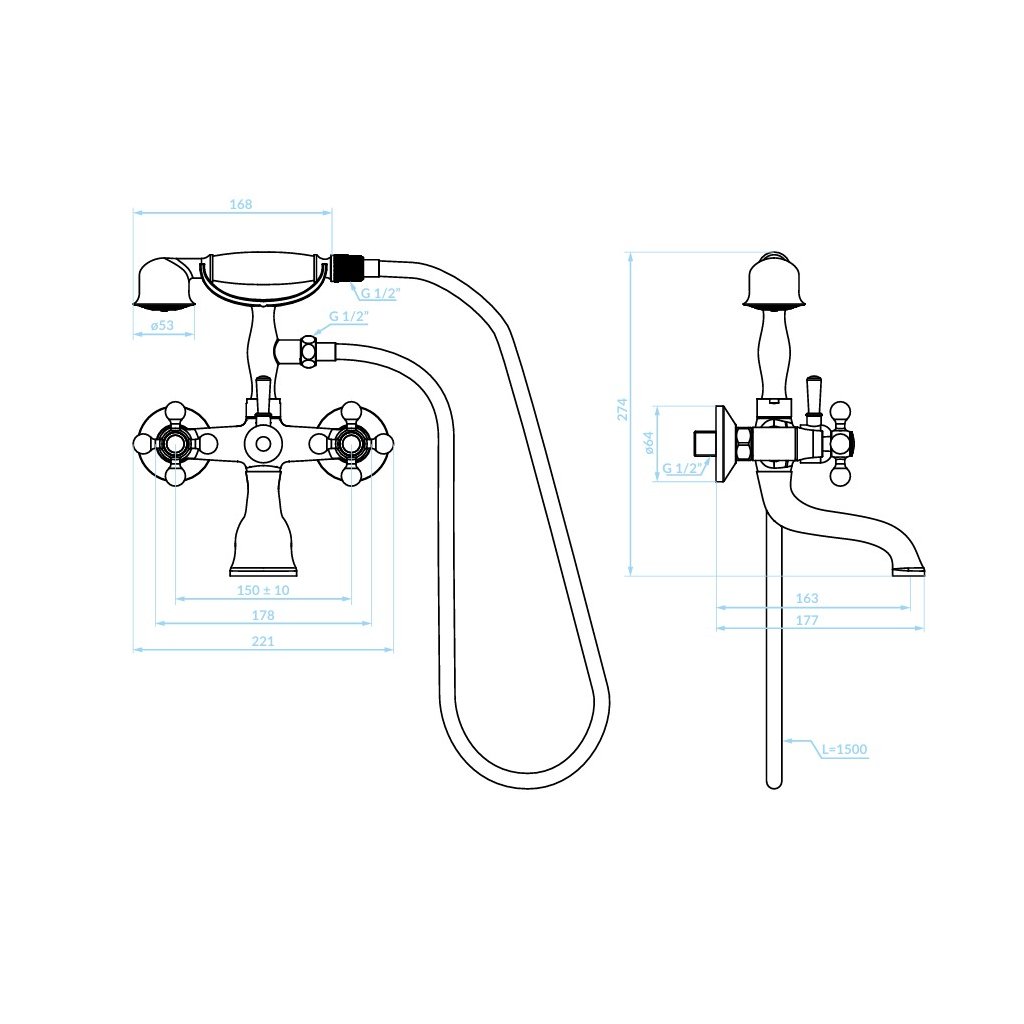 Kuchinox Stillo, fali kádcsaptelep kézizuhannyal, króm, LAV-BKI_011D