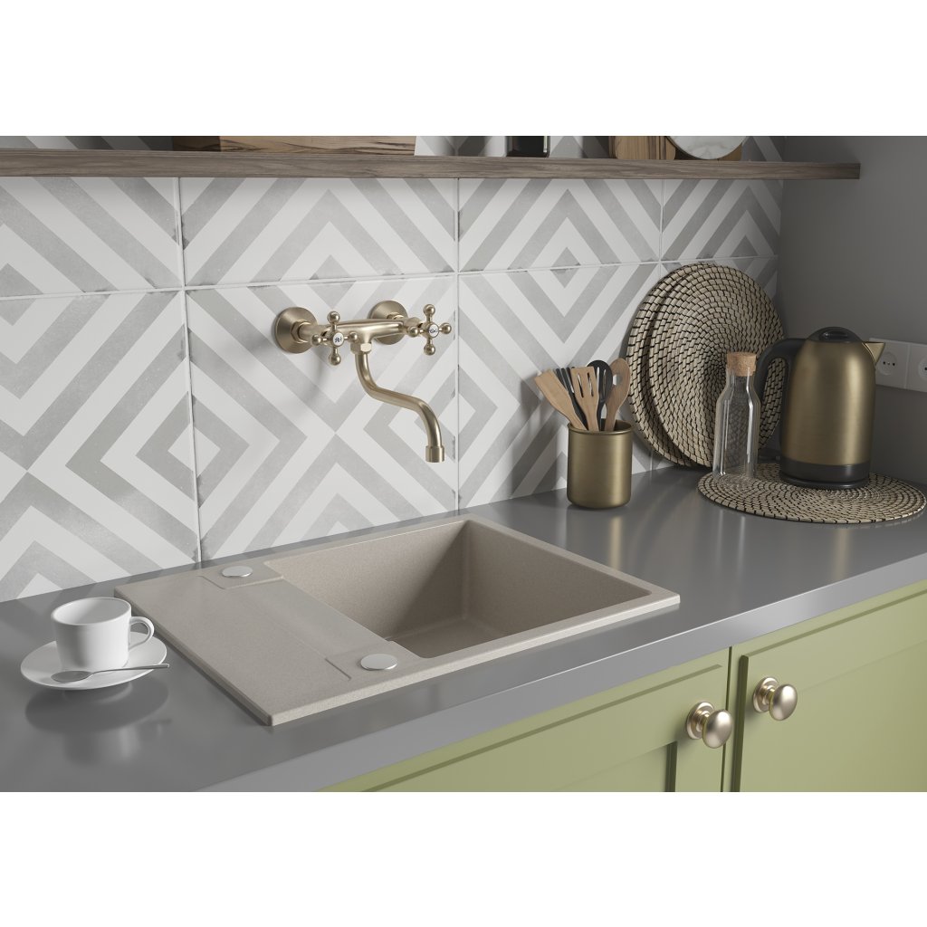 A csaptelep antik sárgarézből készült, amely rusztikus és elegáns megjelenést kölcsönöz neki. Ez a szín tökéletesen illeszkedik a klasszikus, vintage vagy rusztikus stílusban díszített konyhák dekorációjába.