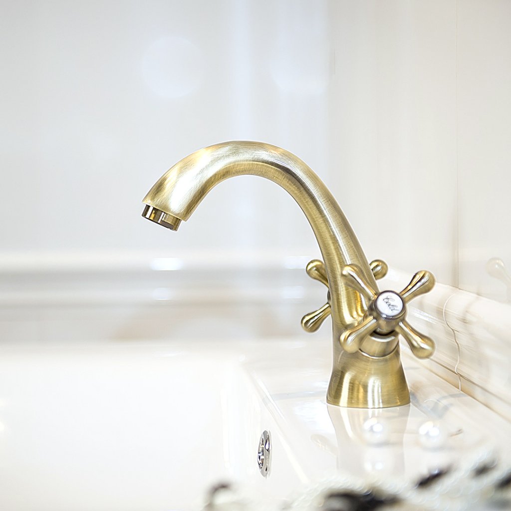 A mosdócsaptelep a fürdőszobai felszerelések egyik fő eleme. Naponta akár több tucatszor is használják, ezért praktikusnak, funkcionálisnak és esztétikusnak kell lennie. Erről szól a Stilo mosdócsaptelep. Ez a modell álló telepítésre készült, dugóval felszerelve. A Stilo csaptelepet a többi modern modelltől a két kereszt alakú gomb különbözteti meg - külön a meleg és a hideg vízhez. Figyelemre méltó az érdekes antik sárgaréz árnyalatú felületkezelés is. Ez a kialakítás eredetivé teszi a csaptelepet, és szokatlan hangulatot kölcsönöz a fürdőszobának.