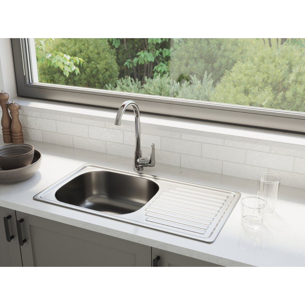 A TRAFIS 1 rekeszes acél mosogatót közepes méretű konyhákba, előre gyártott házakba és családi házakba tervezték. Méretei: