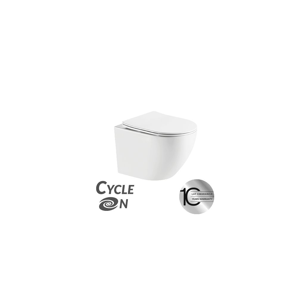 ➡️ Fali WC innovatív CycleOn örvényöblítési technológiával, amely erős vízsugarat használ. Független tesztek kimutatták, hogy ez az új öblítési módszer tökéletesen megtisztítja a WC-csésze belsejét, mindössze 2 vagy 4 liter vizet használva.