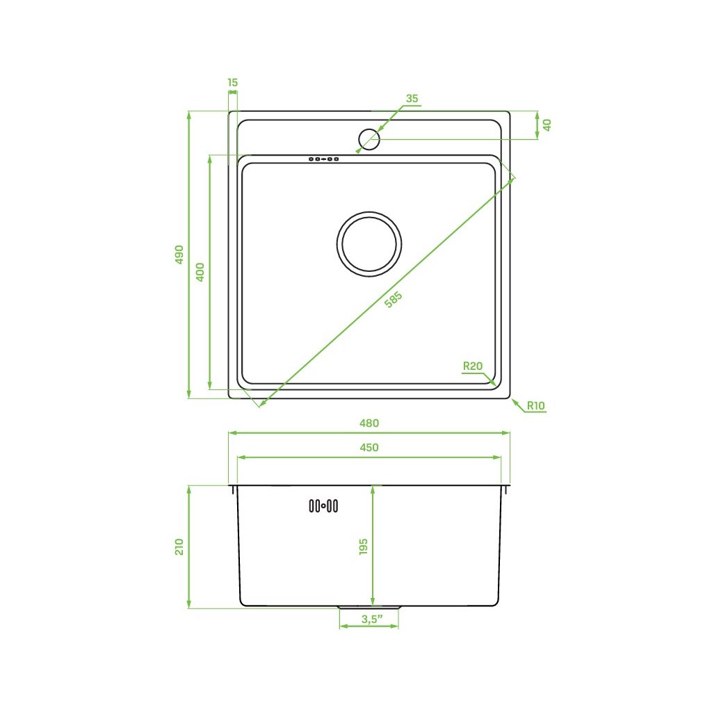 Laveo Besos, 1 rekeszes rozsdamentes mosogató 480x490x210 mm, vászon felületszerkezet, szálcsiszolt acél, LAV-SLB_310T