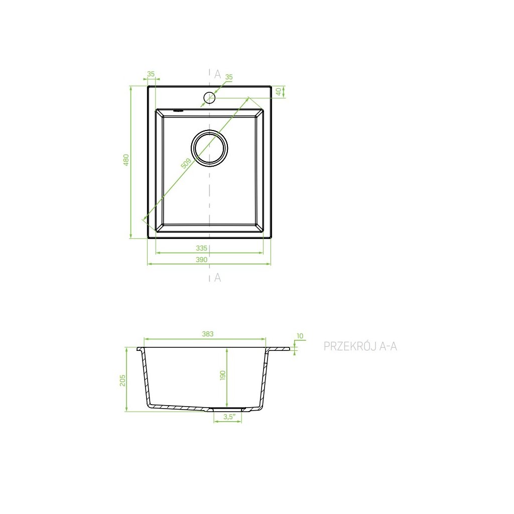 - Típus: 1 kamrás gránit mosogató lefolyó nélkül
