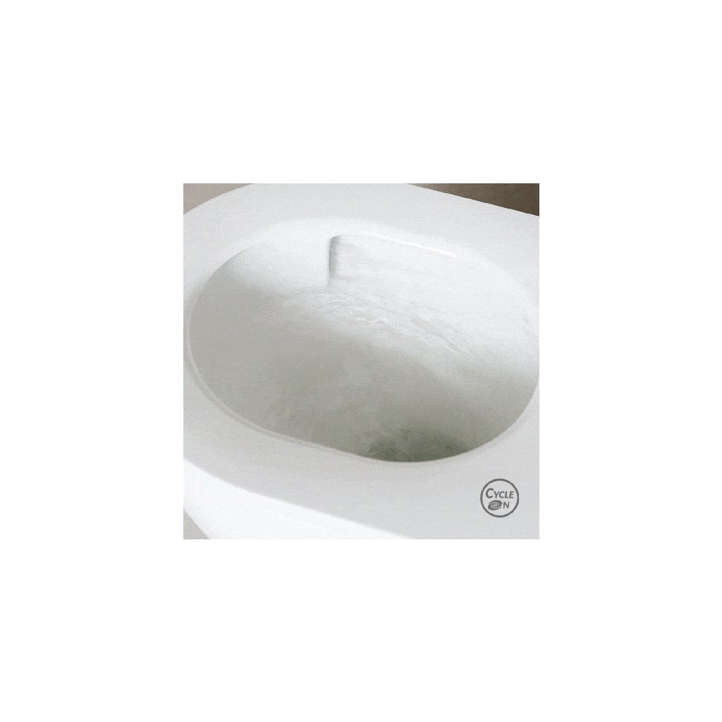 ➡️ Falra akasztható WC innovatív CycleOn örvényöblítési technológiával, amely erős vízáramot használ. Független tesztek kimutatták, hogy ez az új öblítési módszer tökéletesen megtisztítja a WC-csésze belsejét, mindössze 2 vagy 4 liter víz felhasználásával.
