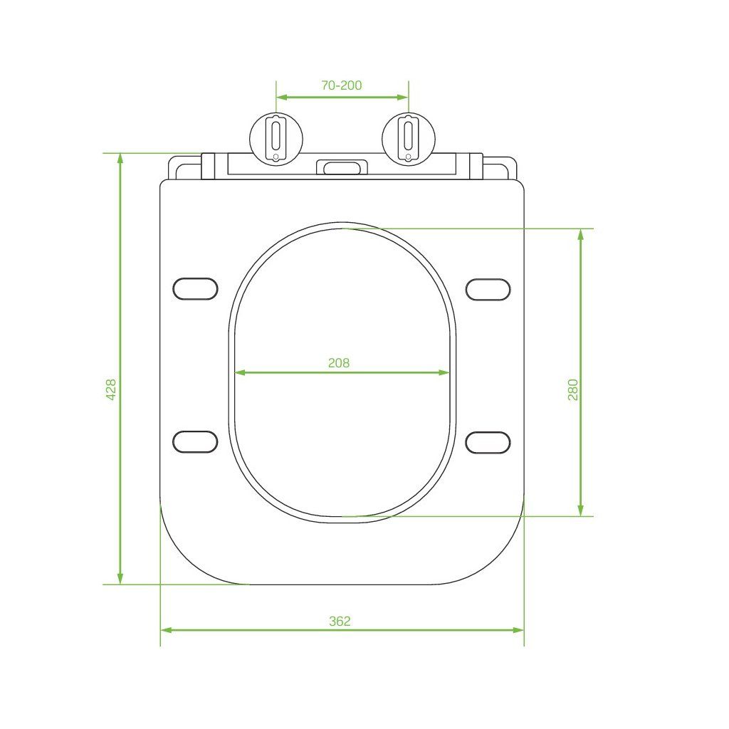 Az ülőke állítható zsanértávolsággal van felszerelve – a legtöbb gyakori WC-csészéhez illeszkedik anélkül, hogy a pontos lyuktávolságot meg kellene mérni. A rögzítőkészlet a csomag része, a telepítéshez nincs szükség speciális szerszámokra.