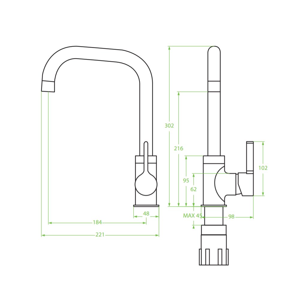 Laveo Lena, magas mosogató csaptelep h-302, króm, LAV-BKU_065D