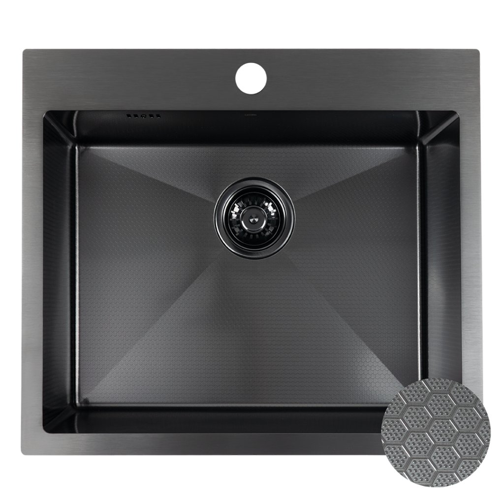 Laveo Malawi, 1 rekeszes rozsdamentes mosogató 580x500x200 mm, fekete, LAV-SLM_710H