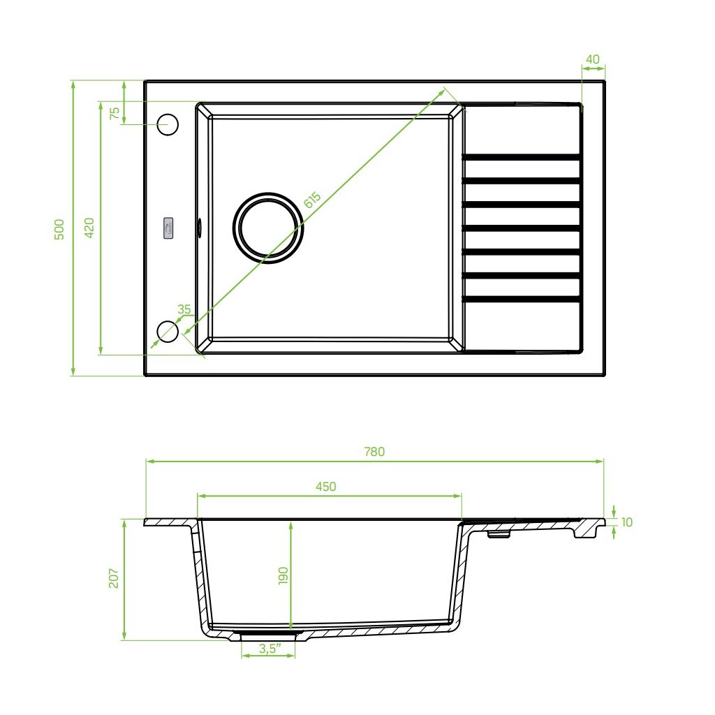 - Típus: 1 kamrás gránit mosogató rövid leeresztővel