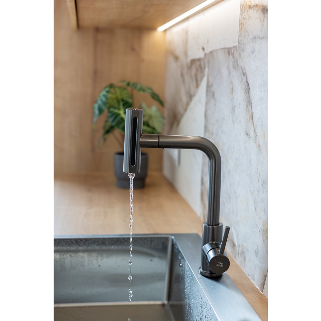 Laveo Rotaro, magas mosogató csaptelep kihúzható 4 funkciós kifolyóval, grafit, LAV-BLR_969D
