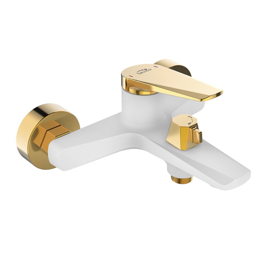 Laveo Rubio, falra szerelhető fürdőkád csaptelep, fehér-arany fényes, LAV-BVR_610G