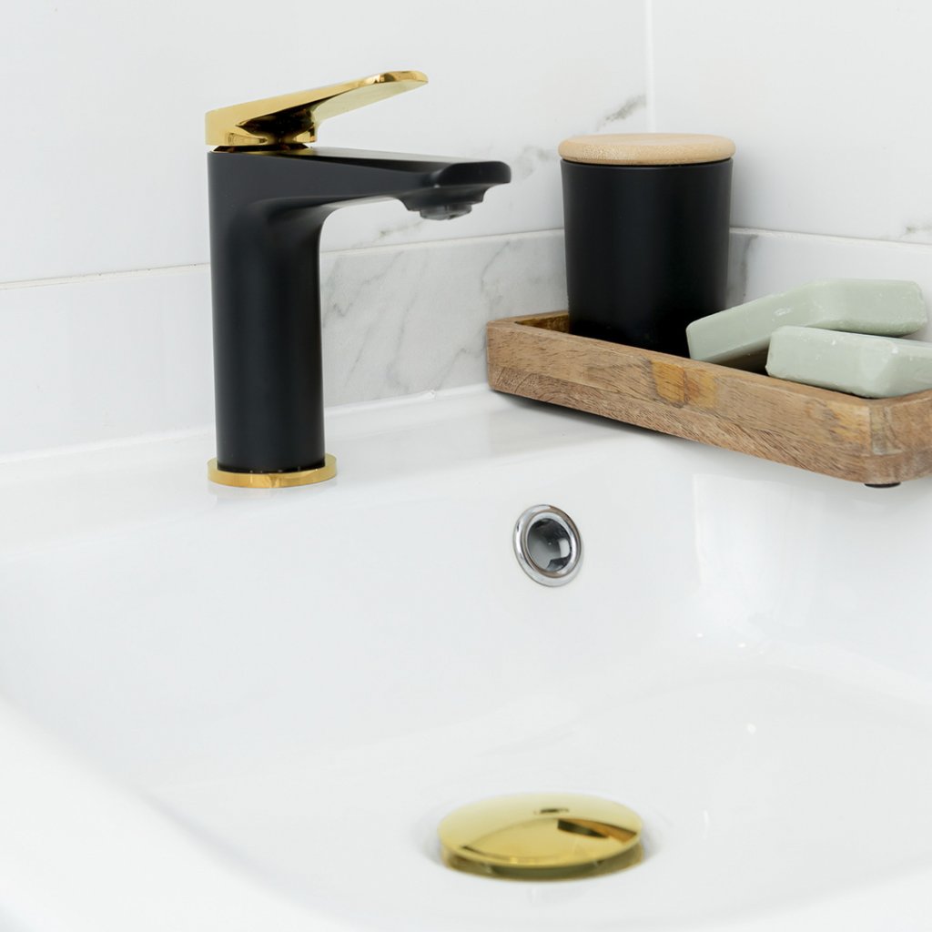 A Rubio állványos csaptelep a csaptelepek számára előfúrt lyukkal ellátott mosogatókba való beépítésre szolgál. Az utóbbi időben a matt fekete és sárga arany árnyalat legdivatosabb kombinációja ideálissá teszi a modellt a fürdőszoba elegáns karakterének hangsúlyozására. Az akkumulátortestet és a kart finom letörések díszítik a szélein, amelyek csiszolt drágakövekre emlékeztetnek. Az alacsony áramlási osztálynak köszönhetően a modell lehetővé teszi a vízfogyasztás csökkentését, ami alacsonyabb számlákat jelent. Az akkumulátor egyszerű telepítési rendszerrel rendelkezik, szerszámok használata nélkül. Ennek köszönhetően magunk is könnyedén beépíthetjük. A csaptelep készlet az arany kar színéhez igazodó ClickClack leeresztőcsavart tartalmaz, amely lehetővé teszi a lefolyó egyetlen megnyomásával zárását és kinyitását.