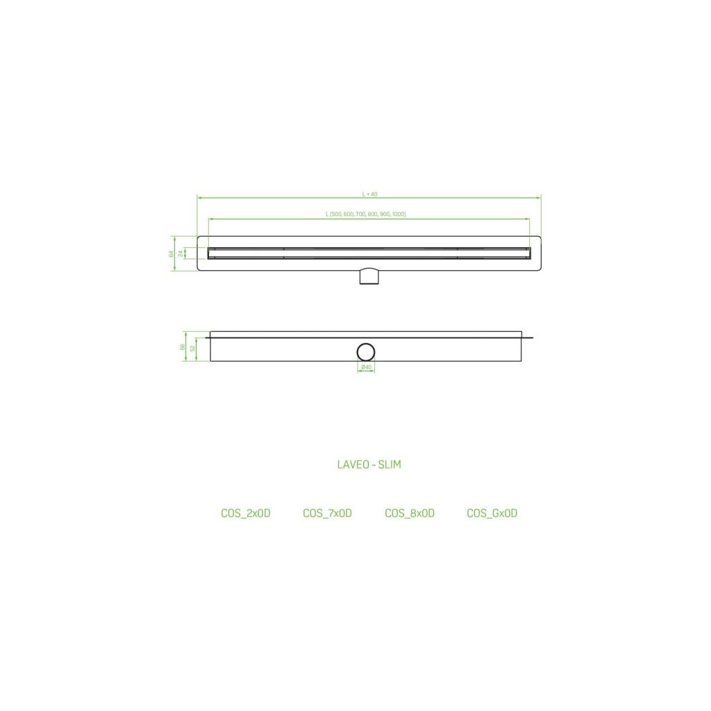 Laveo Slim, zuhany lefolyó 50 cm, fekete, LAV-COS_750D