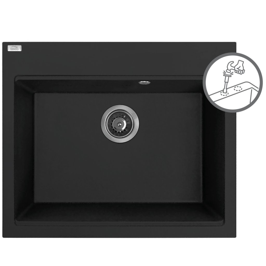 Laveo Tau, 1 rekeszes gránit mosogató 600x500x215 mm, fekete, LAV-SBT_B106