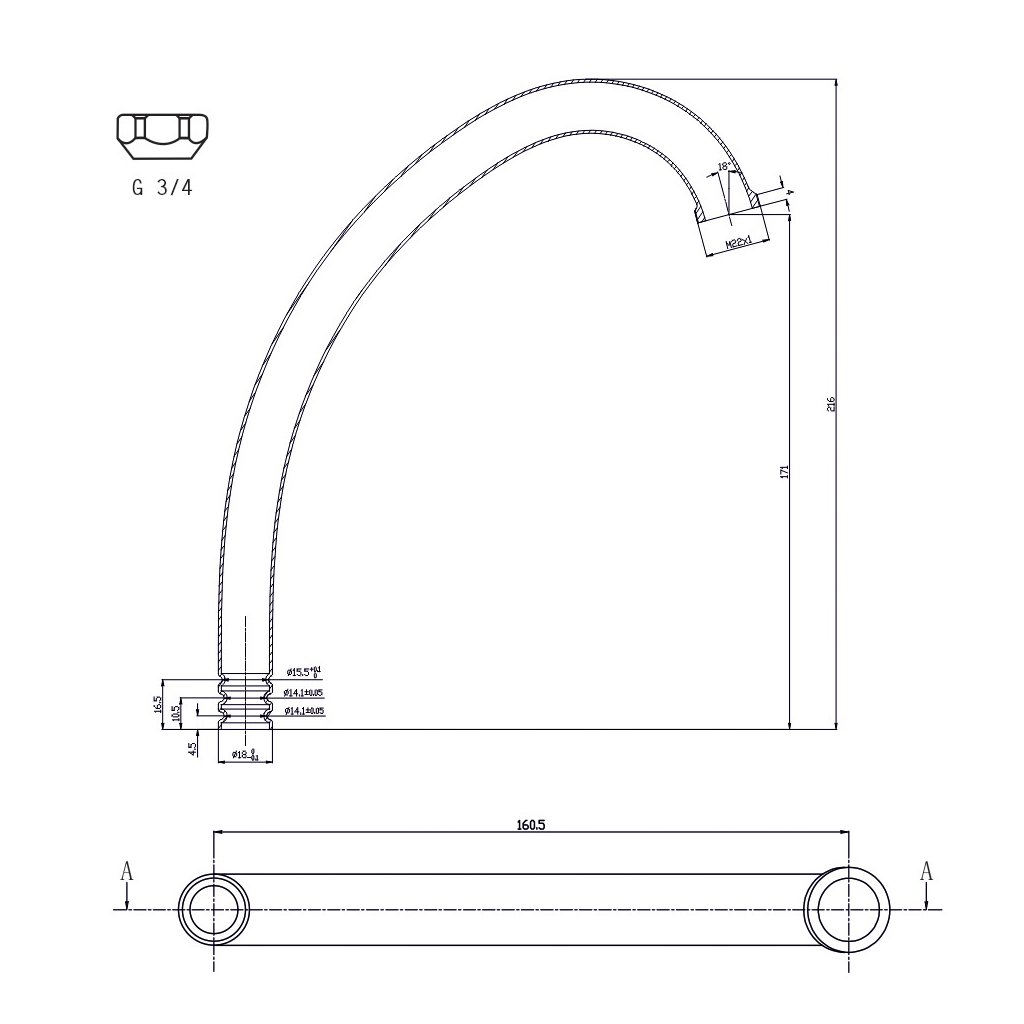 Cső alakú kar 3/4"-es csatlakozó anyával, teljes magassága 216 mm. A kar kiváló minőségű krómozott sárgarézből készült. A kar CBS201015M alacsony nyomású akkumulátorokhoz készült.Kiegészítő paraméterek