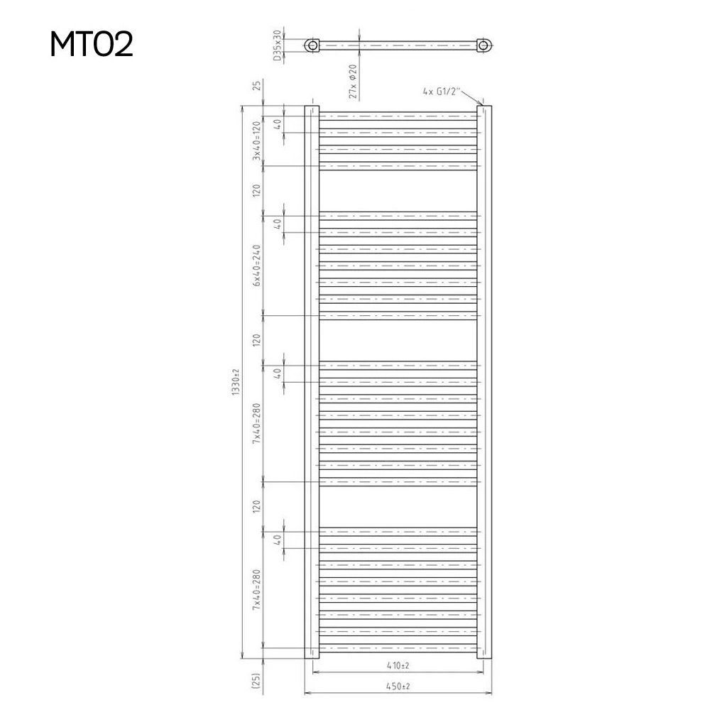 A fürdőszobai radiátorok elsősorban fürdőszobák, WC-k, konyhák, nappalik és bejárati helyiségek fűtésére szolgálnak. Modern és praktikus kialakításukkal kiválóan alkalmasak törölközők, konyharuhák és egyéb textíliák szárítására, előmelegítésére. Erre a célra elektromos fűtőrúddal szerelhetők fel elektromos és kombinált fűtéshez. A radiátorok kényszer- és automatikus keringtetésű melegvizes fűtési rendszerekben használhatók. A radiátorok különböző keresztmetszeti formájú zárt acélprofilokból készülnek. Az alkalmazott technológiának köszönhetően a hosszú távú korróziós és mechanikai ellenállás garantált. A kiváló minőségű felületkezelés megfelel a higiéniai biztonság minden követelményének, és a környezet legnagyobb tiszteletben tartásával készül. A standard színárnyalat a fehér. Maximális üzemi túlnyomás: 1,0 MPa. Maximális üzemi hőmérséklet: 110°C.Kiegészítő paraméterek