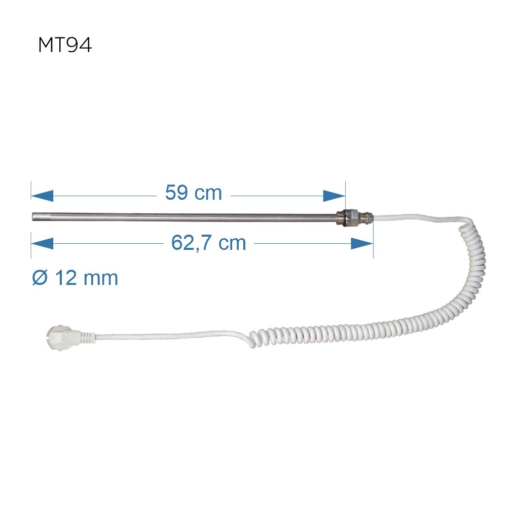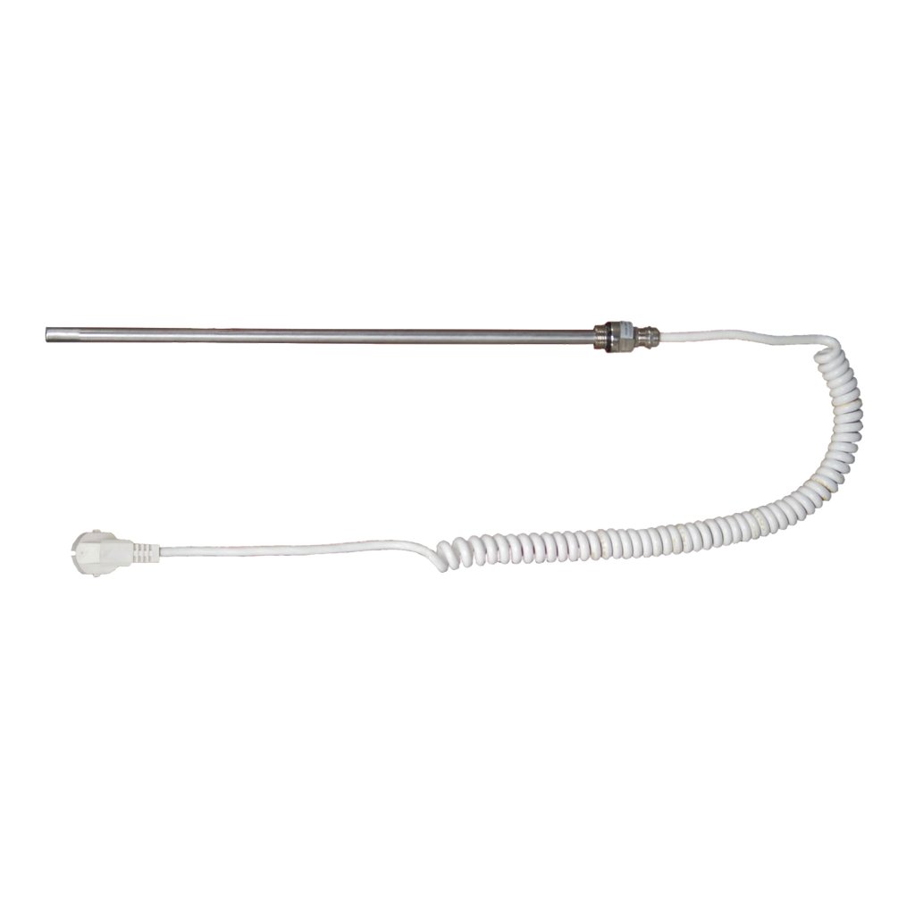 A termosztát nélküli elektromos fűtőrudat a fürdőszobai radiátorok - létrák - fűtésére használják. A fűtőrúdnak nincs szabályozója vagy termosztátja, ha a ház csatlakoztatva van, és felmelegszik, hacsak nem kapcsolja ki. Az MT99 jelzésű termosztát külön megvásárolható. A kábel hossza a fűtőrúdnál 120 cm, és egy biztosítócsappal ellátott dugóval végződik.Kiegészítő paraméterek