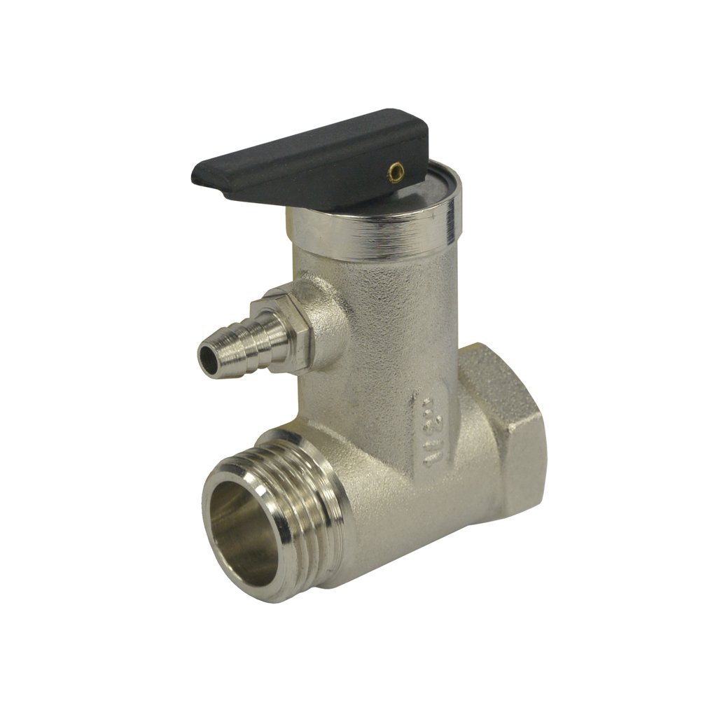 A kiváló minőségű, nikkelezett sárgarézből készült biztonsági szelep vízmelegítők - kazánok - csatlakozását szolgálja. A biztonsági szelep a hulladéktömlő csatlakoztatására szolgál. Az összeszerelés G menetes becsavarással történik A biztonsági szelep ISO 228 európai szabvány szerinti menettel készül.Kiegészítő paraméterek