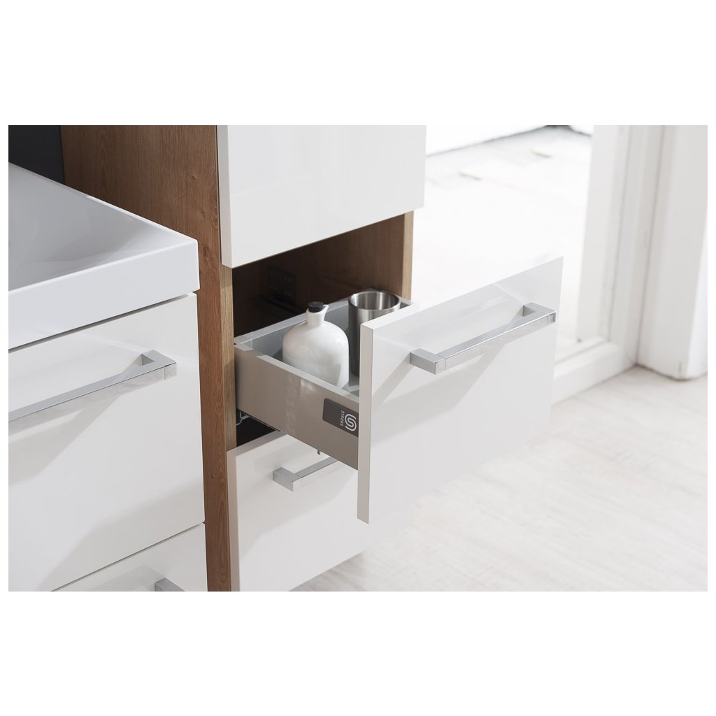 Egyszerűség, hatékonyság, elegancia. Ezek a Bino fürdőszobabútorok fő közös nevezői, amelyek bármilyen fürdőszobát díszítenek. Az innováció és a megbízható megközelítés kombinációjának köszönhetően kiváló minőségű és nagyon modern bútorok jönnek létre. A színkombinációk biztosítják, hogy a bútorok bármilyen fürdőszobába illeszkedjenek. Két teljesen kihúzható fiók önzáró sínekkel és erős csillapítással nagyon praktikus a felhasználó számára. A szekrényt összeszerelt állapotban szállítjuk.Kiegészítő paraméterek