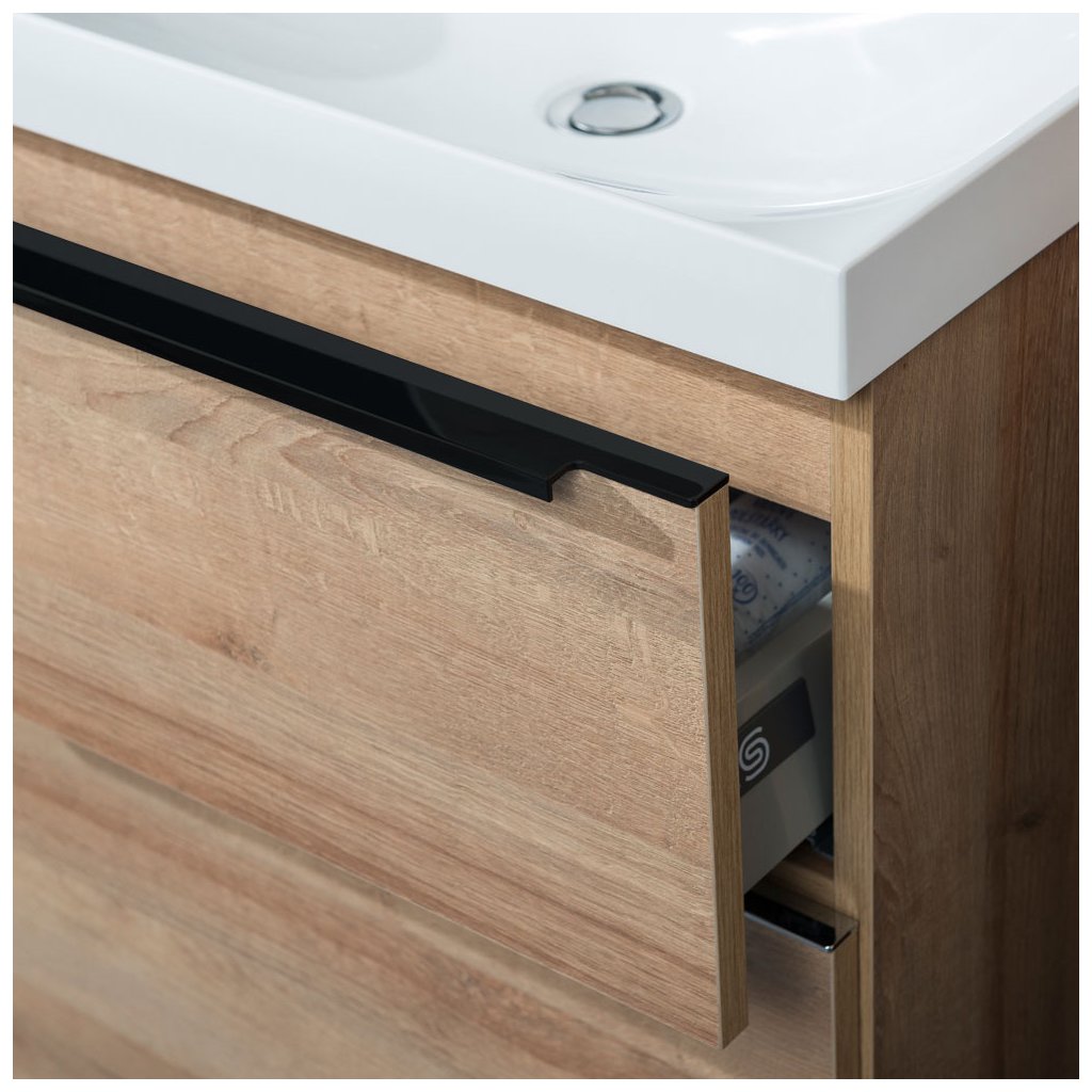 A Mailo fürdőszobabútor-sorozat lehetővé teszi a szekrények számos különböző variációban történő kombinálását. Ez lehetővé teszi mind a nagy fürdőszobákhoz illő komplex kombinációk, mind a modern dizájnban minimalista megoldások létrehozását. A fiókok dizájner fekete fogantyúkkal és Strong márkájú, lassan záródó sínekkel vannak felszerelve. Számos színkombináció közül választhat, Multidecor. A szekrények összeszerelve kerülnek kiszállításra, és mindegyik felakasztásra van tervezve.Kiegészítő paraméterek