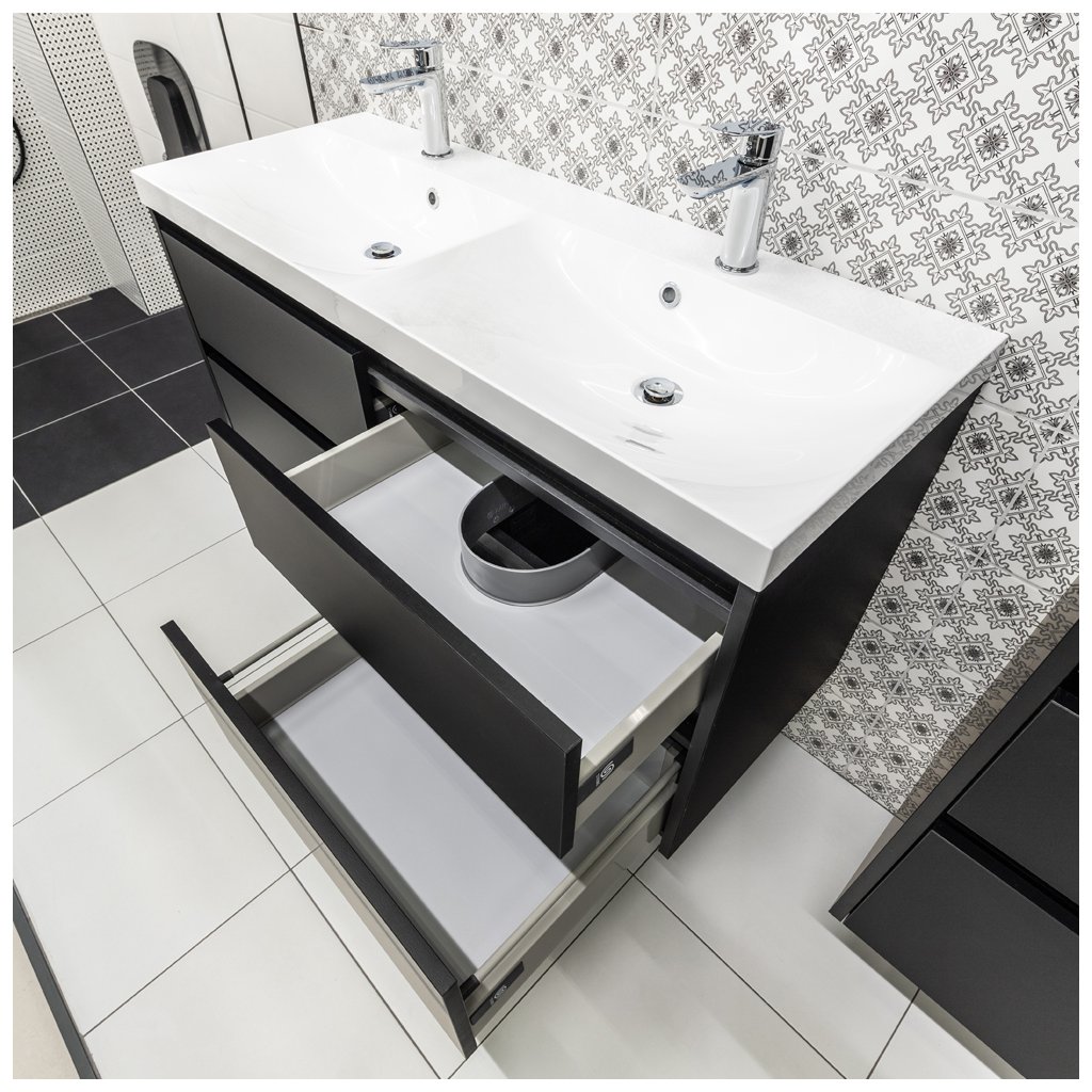 A Mailo fürdőszobabútor-sorozat lehetővé teszi a szekrények számos különböző variációban történő kombinálását. Ez lehetővé teszi mind a nagy fürdőszobákhoz illő komplex kombinációk, mind a modern dizájnban minimalista megoldások létrehozását. A fiókok dizájner fekete fogantyúkkal és Strong márkájú, lassan záródó sínekkel vannak felszerelve. Számos színkombináció közül választhat, Multidecor. A szekrények összeszerelve kerülnek kiszállításra, és mindegyik felakasztásra van tervezve.Kiegészítő paraméterek