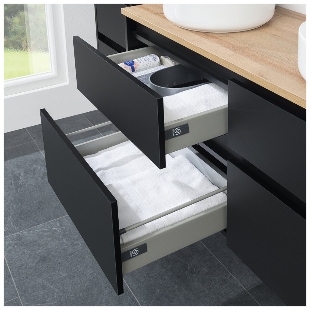 Az Opto fürdőszobabútor sorozatot a süllyesztett mosdókagylós szekrények alkalmazása jellemzi. Több méretű mosdó közül lehet választani. A különféle változatokhoz további szekrények is hozzáadhatók. Vagyis nyitás fogantyúk vagy fogantyúk használata nélkül. A fiókok erős, lassú záródású vasalatokkal vannak felszerelve. Három szín közül választhat: fehér fényes, Riviera tölgy és fekete szupermatrac. A szekrények lézerrel megmunkált élekkel rendelkeznek, és összeszerelve szállítjuk. A szekrények felakaszthatóak.Az öntött márvány mosdókagyló Evermite bevonattal van kezelve. Ez egy polimer alap, amely tartósabbá teszi a mosdót, védőréteget képezve. Ez minimálisra csökkenti a használat által okozott károsodás kockázatát. Az Evermite kezelésnek köszönhetően a felület 40%-kal ellenállóbb a kopással szemben. A felület fényes marad, mint a vásárlás napján. A sima felület és az alacsony áteresztőképesség megakadályozza a vízkő- és szappanmaradványok kialakulását. Mindig tisztítsa meg a felületet a kávé és tea nyomaitól, nem sárgul el. A felület erős vegyszereknek is ellenáll. A mosdókagyló bútorokhoz készült, falra külön nem szerelhető. A munkalapon elhelyezett mosdókagylók támogatják minden fürdőszoba modern és elegáns megjelenését, finomítva ezzel az általános belső kialakítást. A mosdókagylók több darabban egymás mellé helyezhetők a munkalapba.