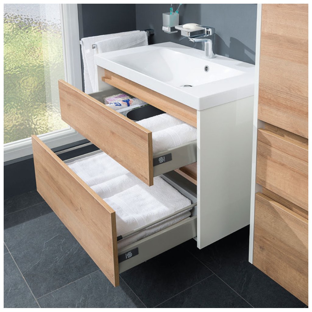 Az Opto fürdőszobabútor sorozatot a süllyesztett mosdókagylós szekrények alkalmazása jellemzi. Több méretű mosdó közül lehet választani. A különféle változatokhoz további szekrények is hozzáadhatók. Vagyis nyitás fogantyúk vagy fogantyúk használata nélkül. A fiókok erős, lassú záródású vasalatokkal vannak felszerelve. Három szín közül választhat: fehér fényes, Riviera tölgy és fekete szupermatrac. A szekrények lézerrel megmunkált élekkel rendelkeznek, és összeszerelve szállítjuk. A szekrények felakaszthatóak.Az öntött márvány mosdókagyló Evermite bevonattal van kezelve. Ez egy polimer alap, amely tartósabbá teszi a mosdót, védőréteget képezve. Ez minimálisra csökkenti a használat által okozott károsodás kockázatát. Az Evermite kezelésnek köszönhetően a felület 40%-kal ellenállóbb a kopással szemben. A felület fényes marad, mint a vásárlás napján. A sima felület és az alacsony áteresztőképesség megakadályozza a vízkő- és szappanmaradványok kialakulását. Mindig tisztítsa meg a felületet a kávé és tea nyomaitól, nem sárgul el. A felület erős vegyszereknek is ellenáll. A mosdókagyló bútorokhoz készült, falra külön nem szerelhető. A munkalapon elhelyezett mosdókagylók támogatják minden fürdőszoba modern és elegáns megjelenését, finomítva ezzel az általános belső kialakítást. A mosdókagylók több darabban egymás mellé helyezhetők a munkalapba.