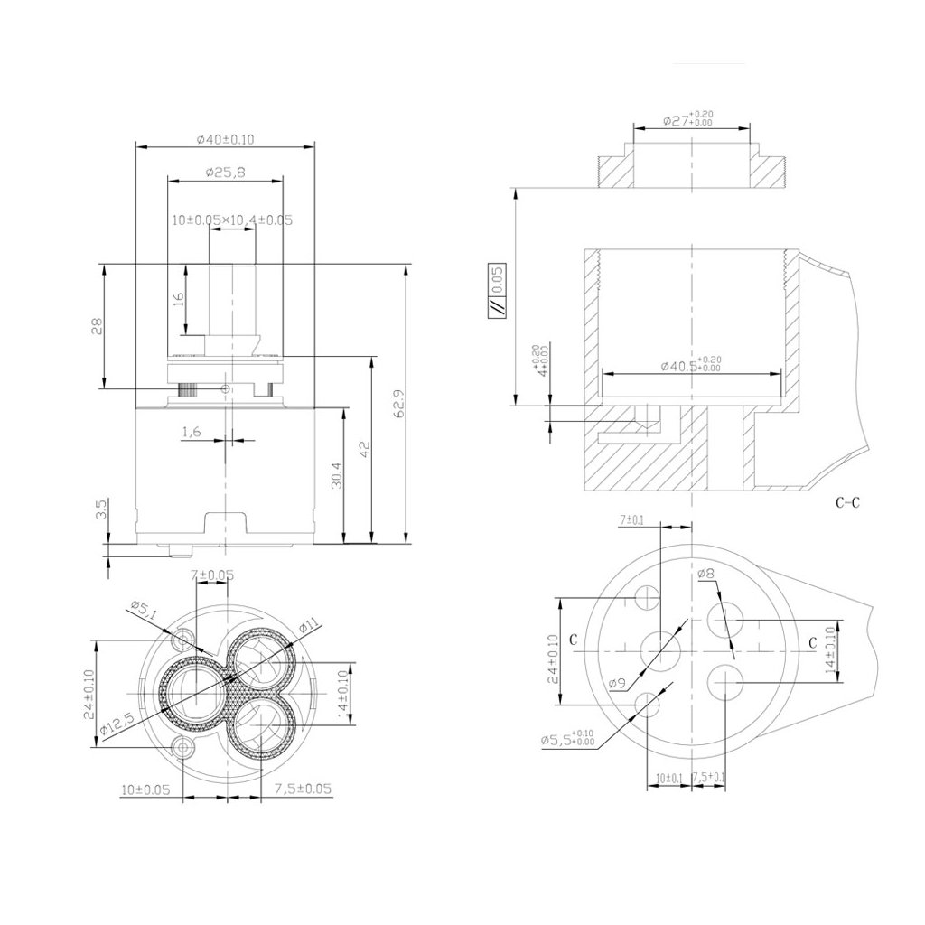 Csere kerámia patron 40 mm átmérőjű akkumulátorokhoz, háromfokozatú, alacsony, két rögzítőcsapos változatban, Sonata akkumulátorokhoz való.Kiegészítő paraméterek